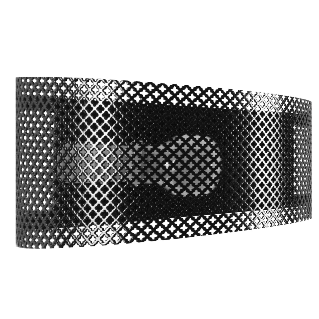 Fabriquée à partir de tôle d'acier perforée et laquée époxy qui garantit une bonne longévité, cette applique forme demi-cylindre au style industriel, laisse passer la lumière à travers la très belle perforation et permet de la mixer dans un style moderne-contemporain qui donnera une touche particulière dans la décoration de votre entrée, couloir ou n'importe quelle pièce de la maison. -