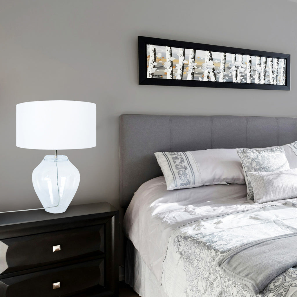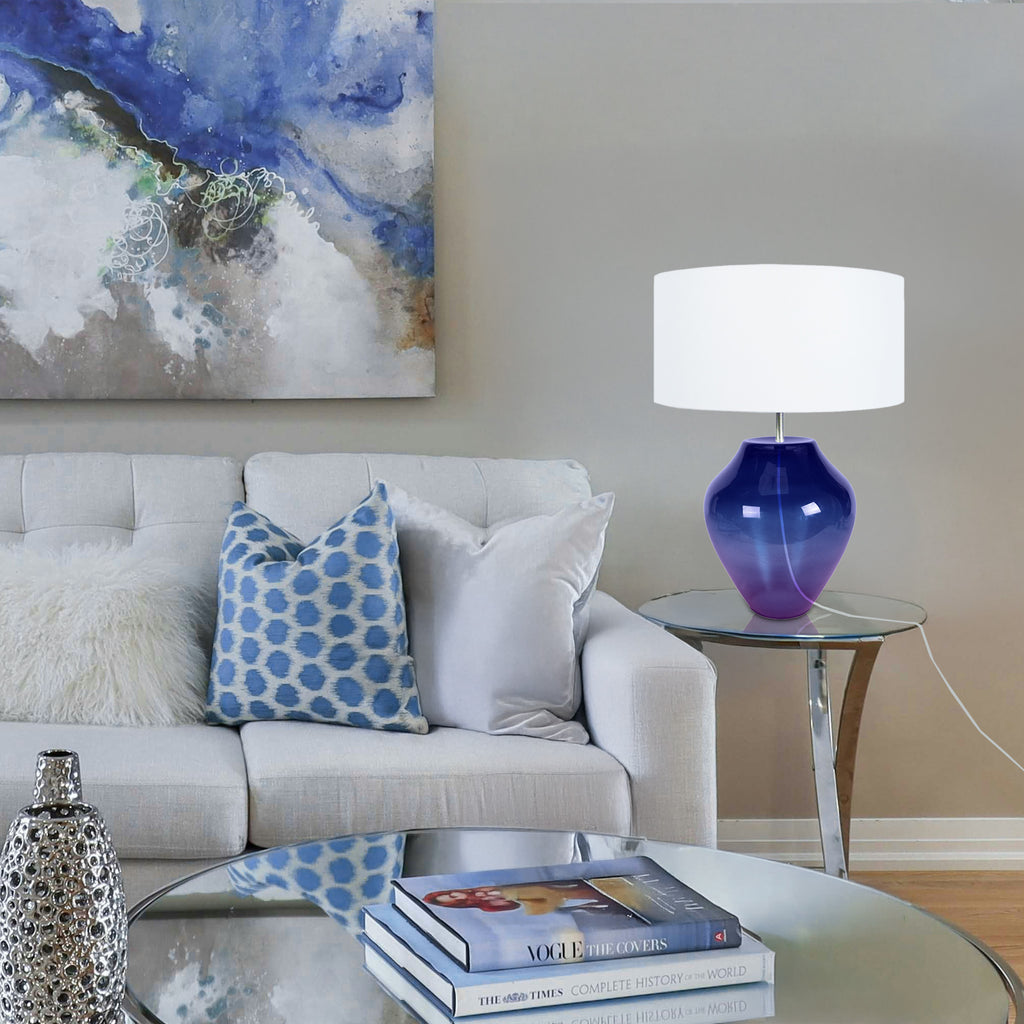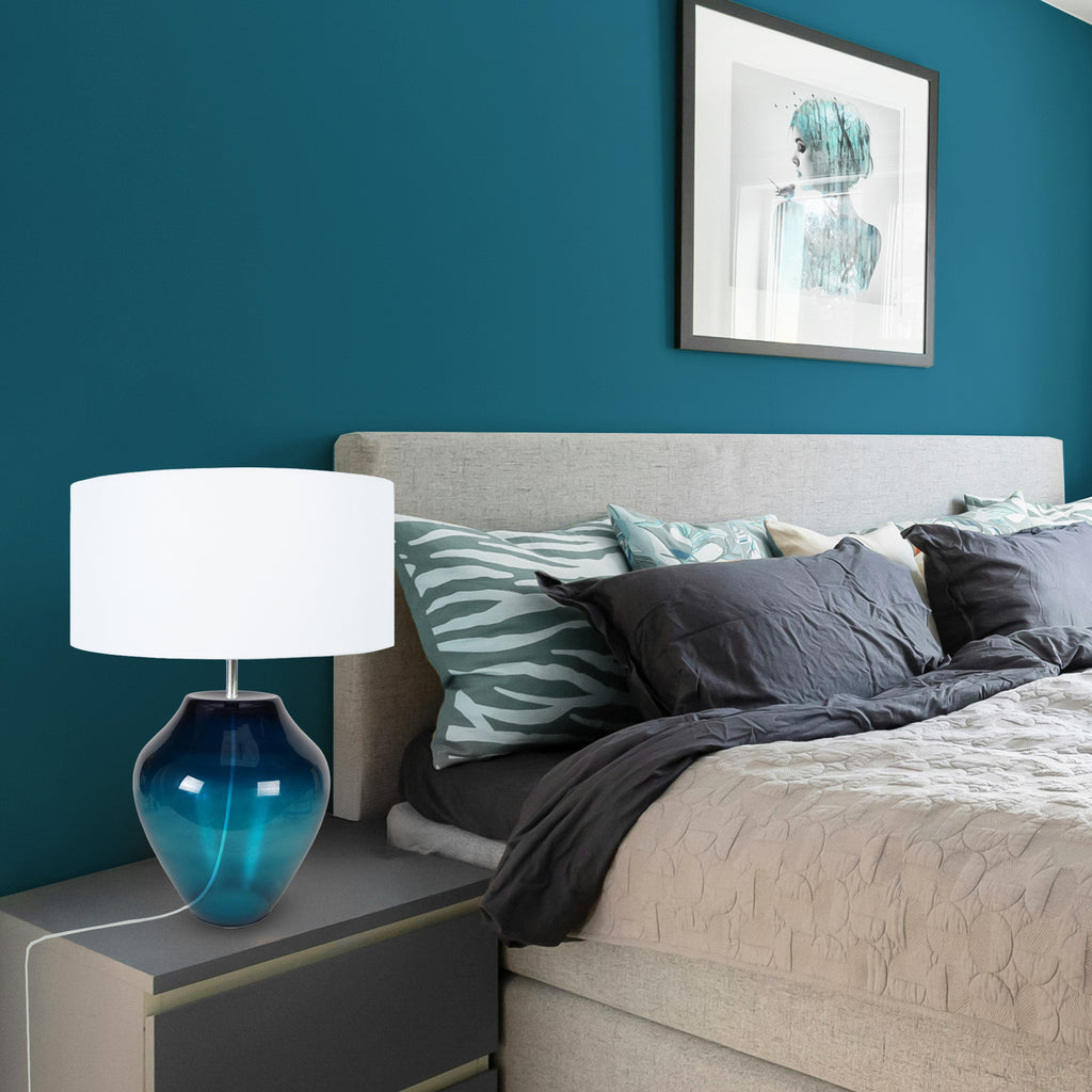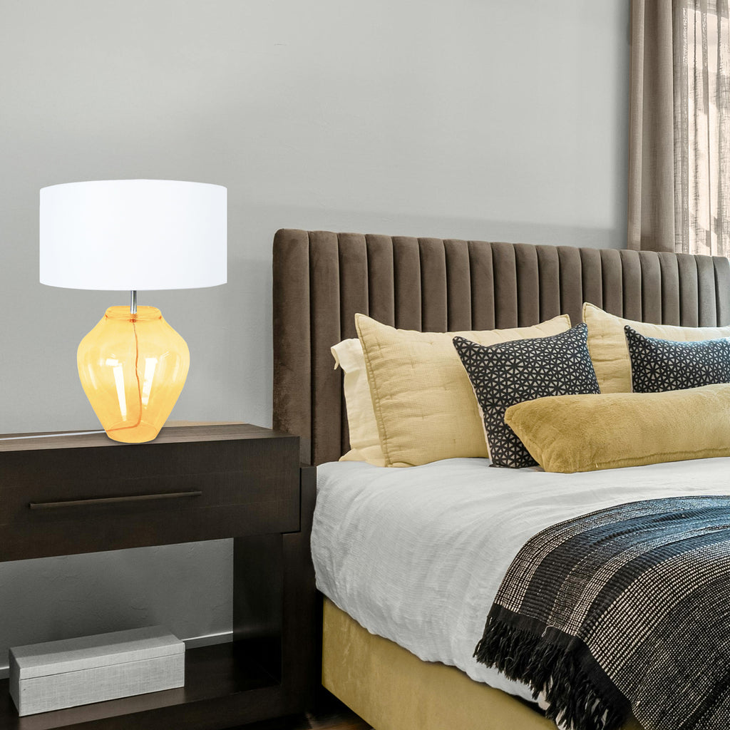 Illuminez votre espace de vie avec cette lampe de table en verre à la fois simple et élégante. La base en forme de pot en verre soufflé bouche par des artisans verriers avec des systèmes d'autre fois, et l'abat-jour en tissu sont le mélange parfait de charme pour donner à votre maison une mise à jour contemporaine et moderne. Parfait pour les salons, les chambres à coucher, les appartements, les chambres de bébé ou les bureaux. -