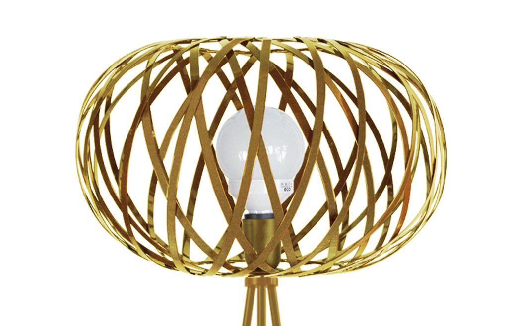 Donnez de l’éclat à votre salon avec ce lampadaire effulgent. Les bandes de l'abat-jour en fer, et pied tripode en tube de fer, peinture époxy, gage de longévité, se déploient autour de l'ampoule (non fourni) pour un accent scintillant et incandescent pour tout espace nécessitant un éclairage ambiant. Si vous l'équipé avec une ampoule LED déco, il donnera à votre pièce, salon, bureau, cuisine ou n'importe quelle autre espace de votre maison une lumière doux, plaisante et de relax. -