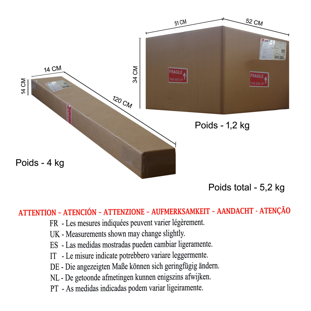 Dimensions: Produit total; diamètre 45 x profondeur 45 x hauteur 161 cm