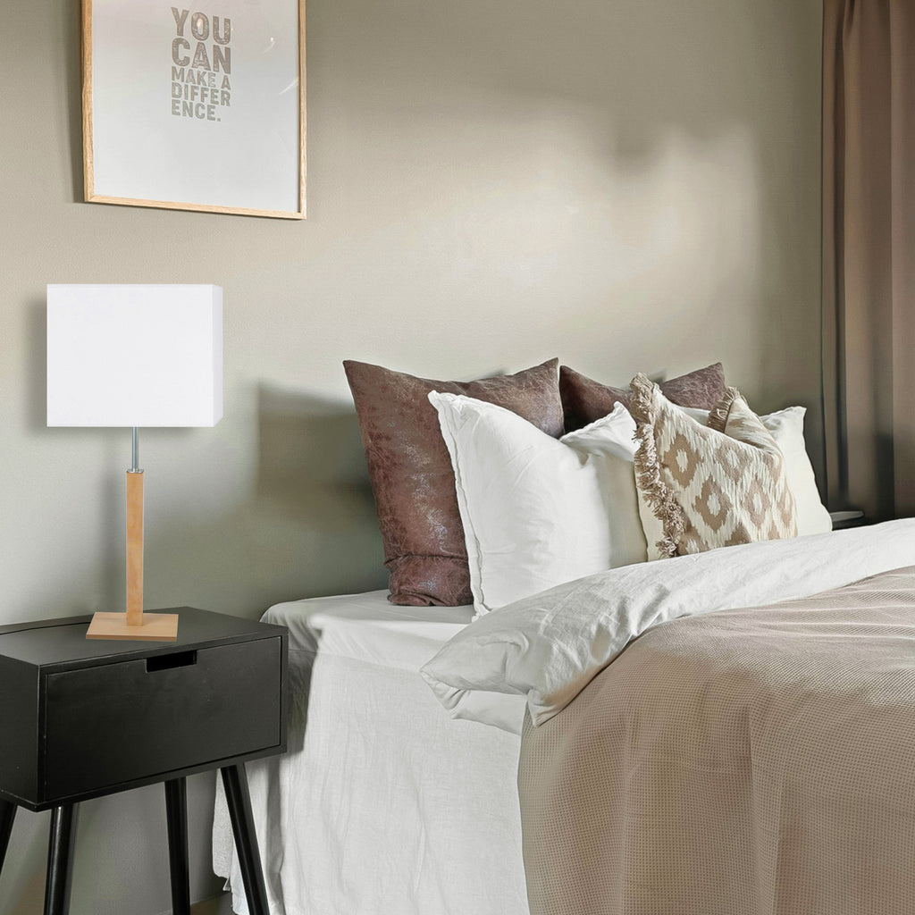 Un Lampe à poser à table de combinaison de luminaire traditionnel et moderne. Cette lampe a poser est très approprié pour les fermes, les îlots de cuisine, les salles à manger, les salons, les bars, les cafés, les discothèques, les bibliothèques, etc. Style moderne, une conception linéaire unique en forme carré de style inspiration nordique, vous apportant une lumière vive tout en créant une ambiance familiale et chaleureuse. Utilisant le bois massif d'origine française et de forêts éco-durables, le fer laqué époxy et un abat-jour en tissu pour un éclairage douce et plaisante. -
