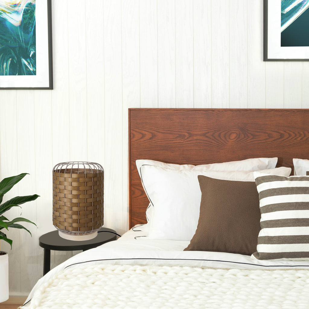 Une mélange de matériaux, filaire d'acier et bois naturel et design contemporain, dans un esprit nature pile dans l'air du temps. Ces luminaires révèlent leur style singulier par leur abat-jour en filaire d'acier, peinture époxi, entracé par des lames de bois naturel, qui projette sur les murs des ombres délicates. La lumière est ainsi tamisée, pour un rendu chaud et doux, idéal en guise d’éclairage d’ambiance. Cette lampe de table est un allié lumineux idéal comme lampe de chevet ou d’éclairage d’appoint dans le salon.