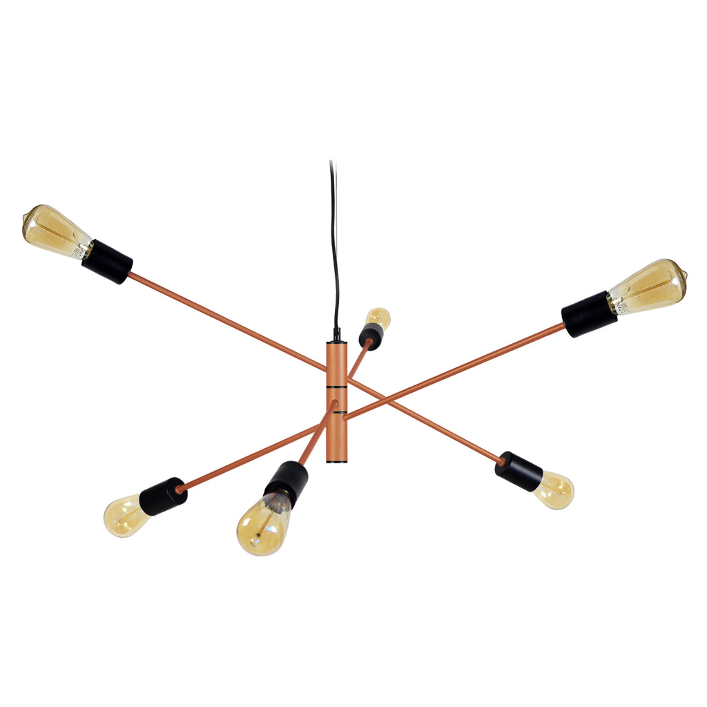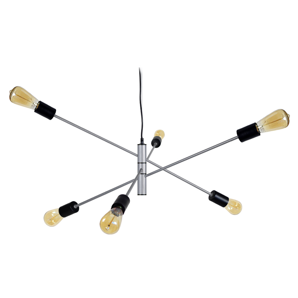 Lustre BORIS -90cm- 6 Lum. Directions multiples x Douille E27-Cordon 60 cm -Ampoule 0cm 0 Aux Choix Ronde Aux Choix-Ampoule Tube ST18 MAXI 40W Halogène Conseillée LED A++ 4W équivalent à 40W Non inclus-Style Industriel --Dimensions Long 90xlarg 90xHaut 100 cm