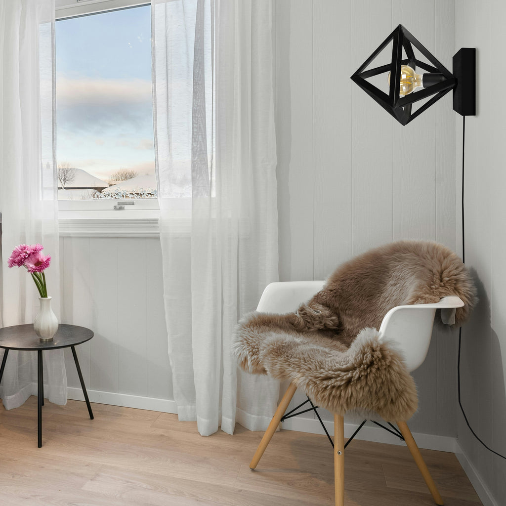 Aplique OCTAÈDRE B preto-24cm- 1 Luz Ambiente x Suporte Lâmpada E27-Cabo Eléctrico de 60cm Preto-Abajur 24cm Aço Quadrado Preto - Lâmpada A19 Halógena MAXI 40W Recomendado LED A++ 7W equivalente a 60W Não incluida-Estilo Industrial - Dimensões 24cm Comprimento x 24cm Largura x 80cm Altura