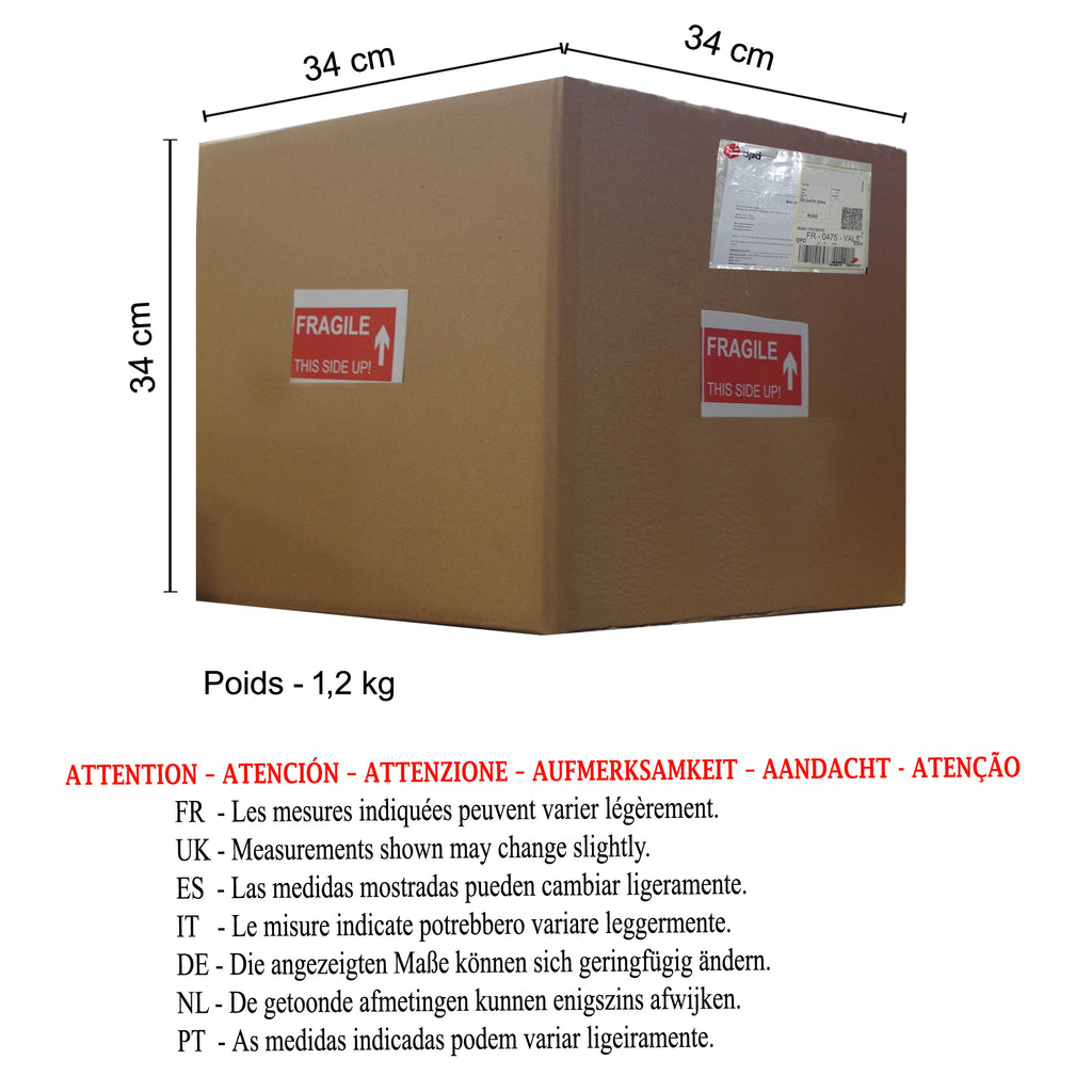 Dimensão da sombra: Altura 17 cm x Comprimento 25 cm x Largura 25 cm