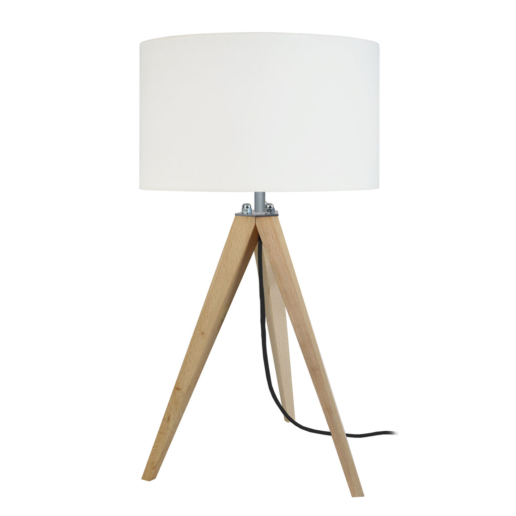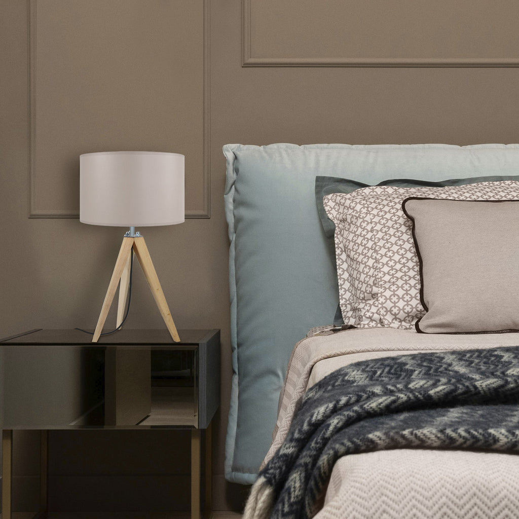 Com este candeeiro tripé em madeira de faia de origem francesa e florestas geridas de forma eco-sustentável, dá um ambiente agradável a qualquer divisão. Portanto, não é apenas adequado como abajur no quarto, mas também pode ser usado como um pequeno candeeiro na sala de estar ou no parapeito da janela. As três pernas de madeira combinam na perfeição com o abajur de tecido, uma combinação que confere ao candeeiro de mesa o seu estilo escandinavo único. -