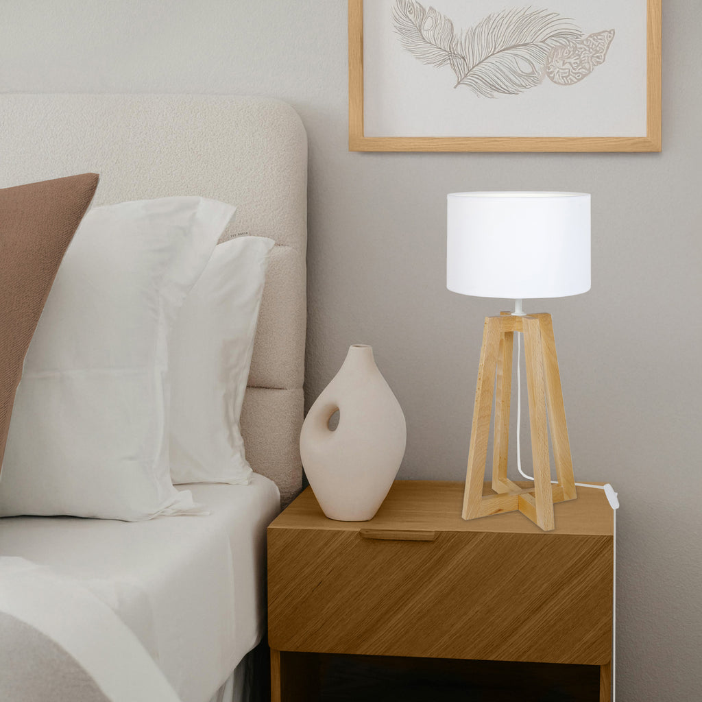 Candeeiro de mesa de inspiração nórdica, feito em madeira de faia de origem francesa e florestas eco-sustentáveis, este candeeiro adapta-se bem aos quartos, dando um toque de charme. O abajur de tecido completa a harmonia da luminária. Vai bem na sua sala, para criar o “cantinho” da tranquilidade. -
