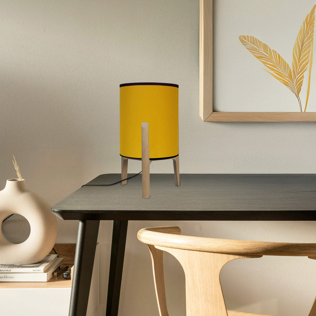 Este candeeiro de mesa de linhas limpas combina uma silhueta limpa com uma mistura de materiais para um visual moderno e distinto. A sua estrutura triangular é feita de madeira maciça de florestas francesas e gestão eco-sustentável, trabalhada por verdadeiros artesãos de madeira. Com a sua forma pura e tão natural, dá uma impressão muito reconfortante na divisão. A cortina de tecido cilíndrica no meio acomoda uma lâmpada de 40 W ou menos (não incluída) e destina-se a iluminar sua sala de estar, escritório, corredor ou quarto. -