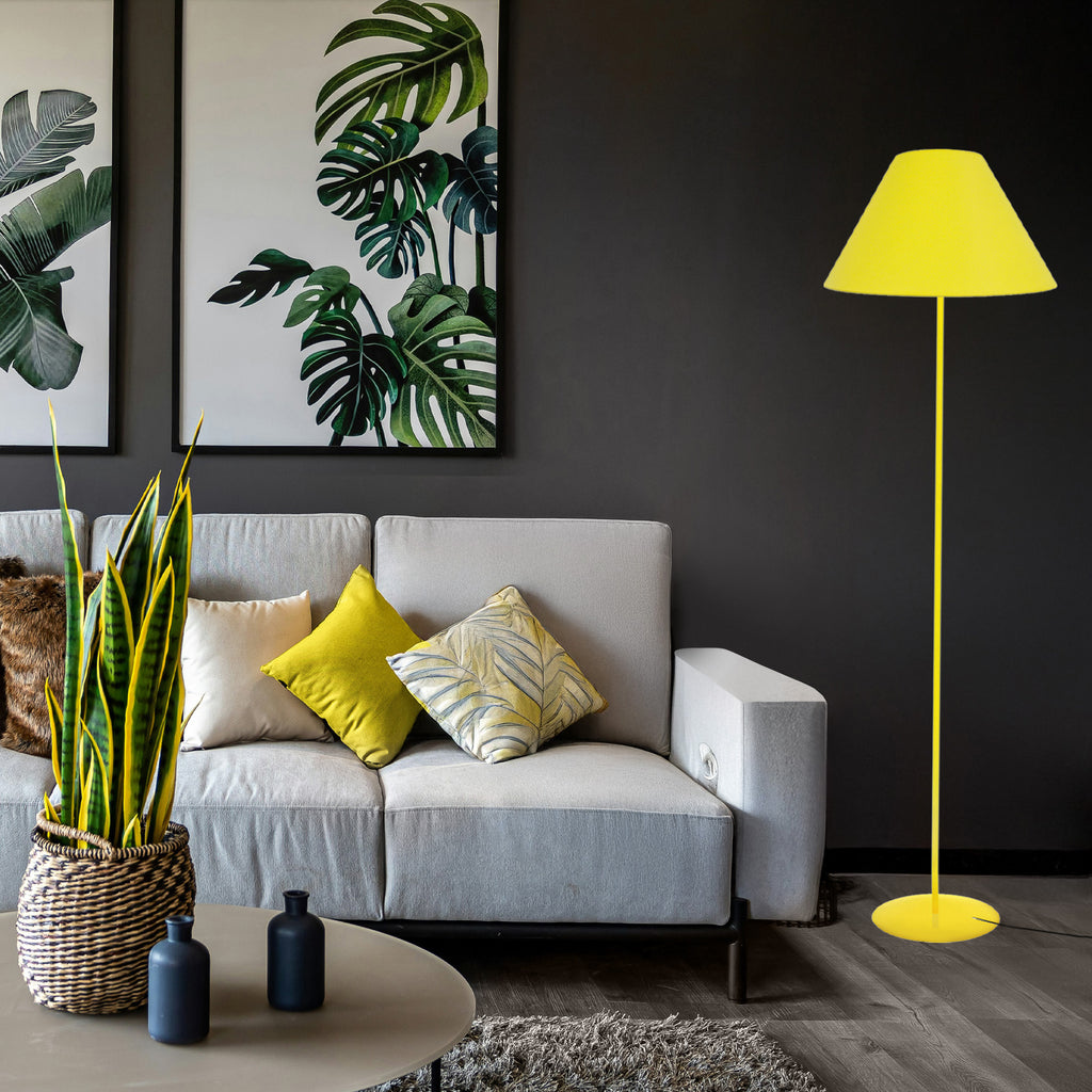 Candeeiro de pé alto KUNAGI abajur em tecido cónico