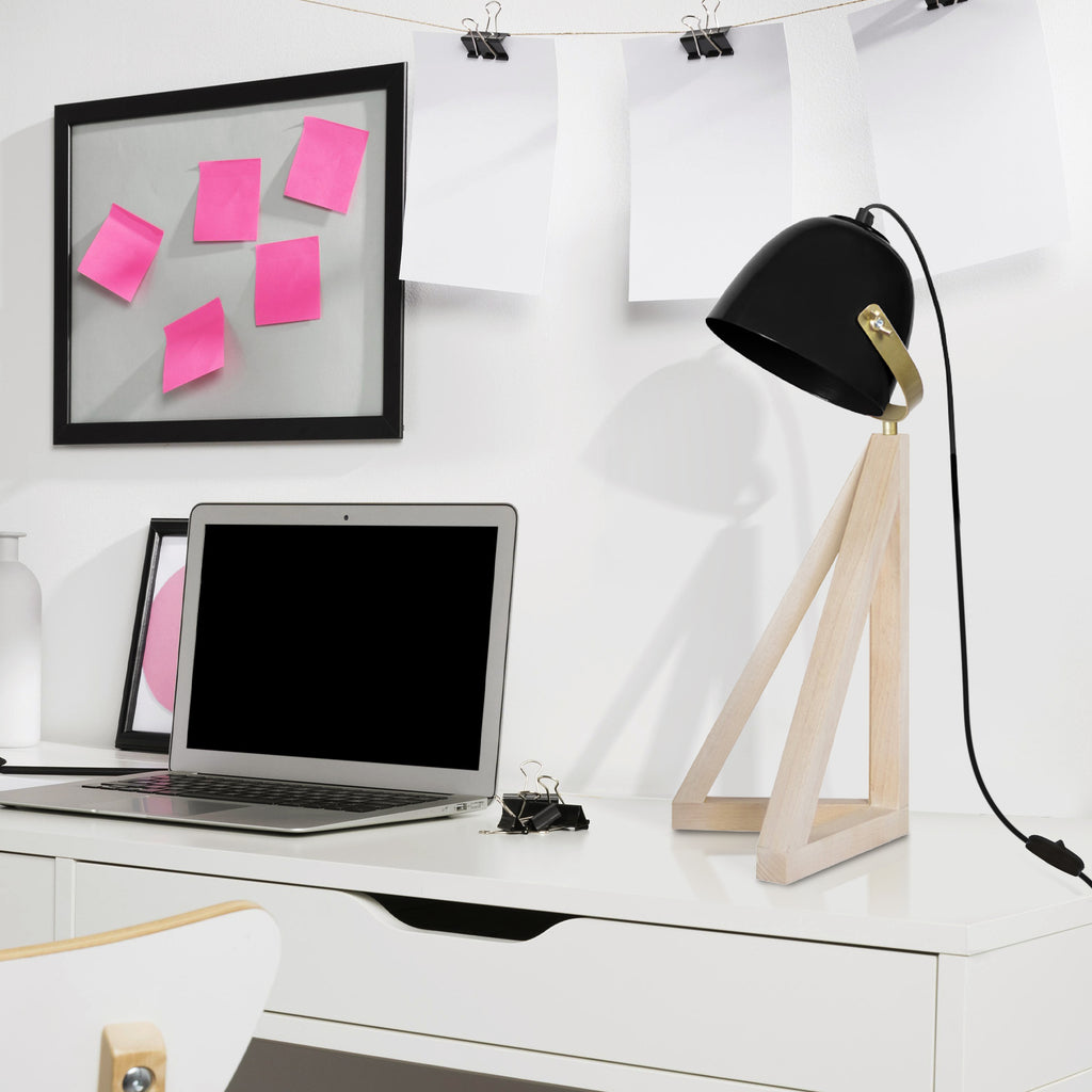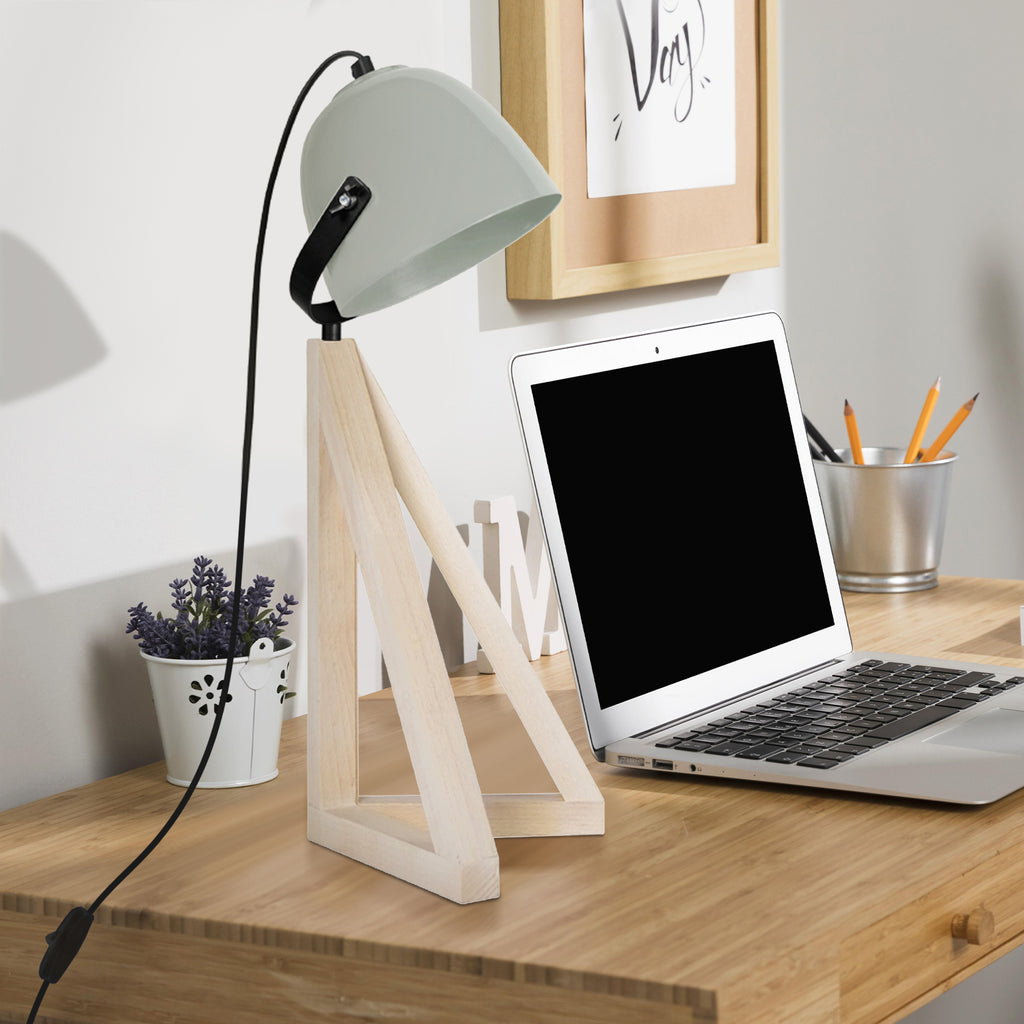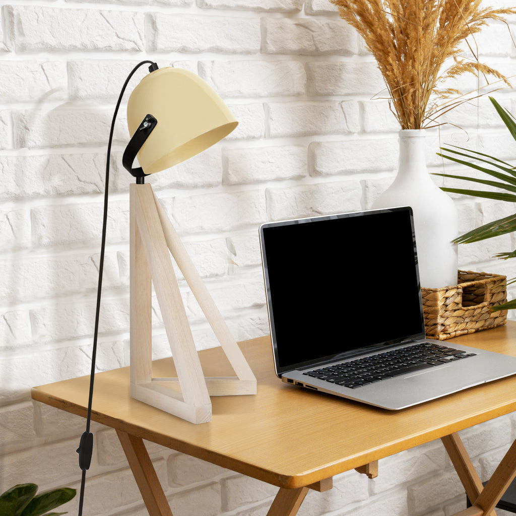 Apoiado num pé triangular em madeira maciça de origem francesa e florestas geridas de forma eco-sustentável e num abajur de ferro e protegido por pintura epóxi, garantia de durabilidade, este candeeiro de mesa exclusivo, onde a barra redonda no topo do abajur permite direcionar o fluxo luminoso, na direção desejada, pelo movimento do abajur e fixado pelo parafuso na barra, torna este candeeiro atraente e agrega estética à sua mesa. Também é uma peça de bom gosto para decorar a sala de jantar, sala de estar, hall de entrada, corredor ou bar. -