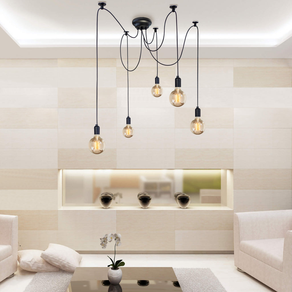 Suspensão composta por vários braços que se fixam ao teto por meio de pequenos ganchos e que você posiciona com os braços mais ou menos afastados de acordo com a sua vontade. Estas suspensões são articuladas, modulares e constituem uma nova tipologia de candeeiro. Se os equipar com uma lâmpada decorativa (não fornecida) terá uma beleza e aspecto únicos. Estas luzes têm a capacidade de se implantar nas alturas do seu interior, vão tecer uma luz de grande volume. -