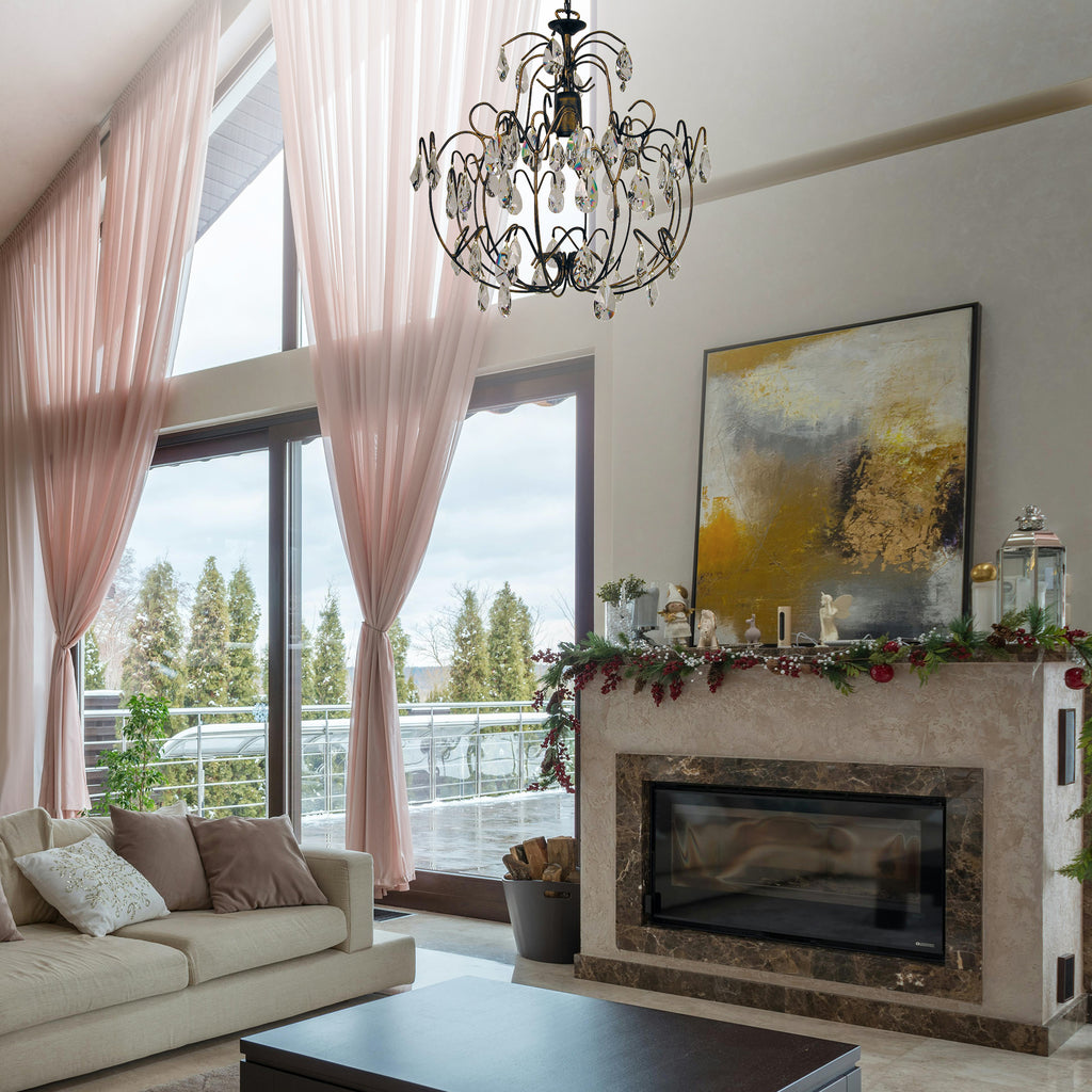 Este lustre em ferro e pintura epóxi, inteiramente feito e patinado à mão. O design, nobre e trabalhado, reflete na perfeição a estética e a qualidade das luminárias com pendentes em vidro tipo Murano, completando a beleza desta luminária permitindo que a iluminação brilhe através destes pendentes. O acabamento muito artesanal distingue-se pelo seu acabamento em pátina dourada.