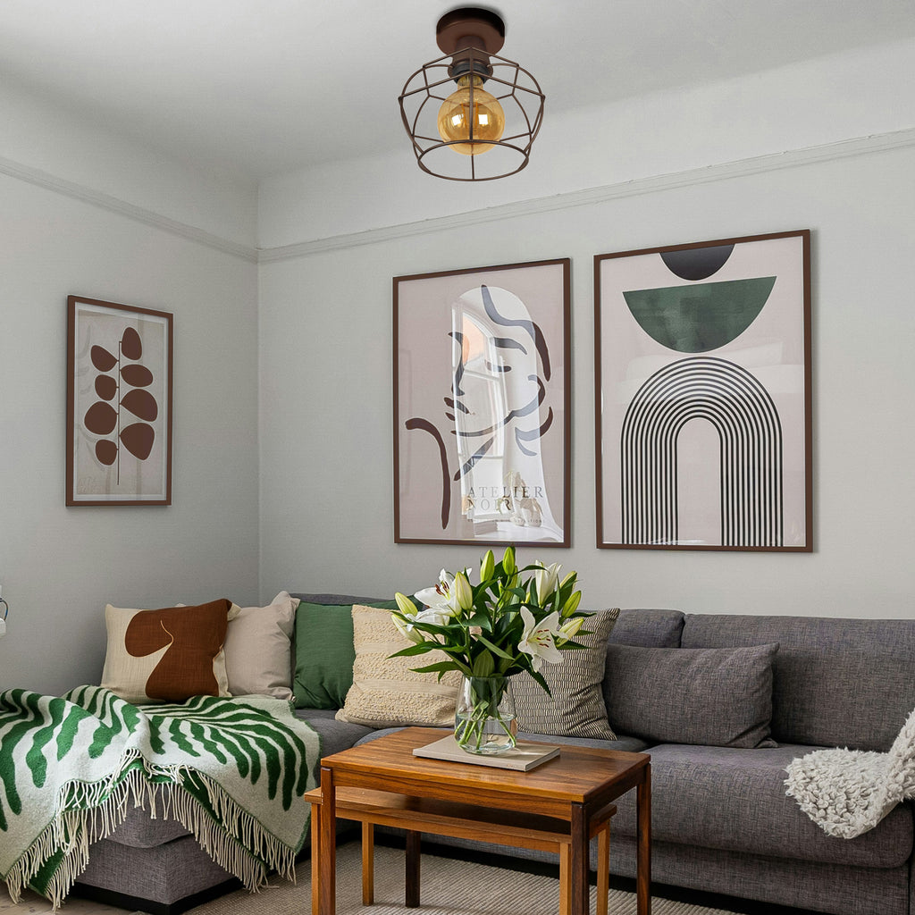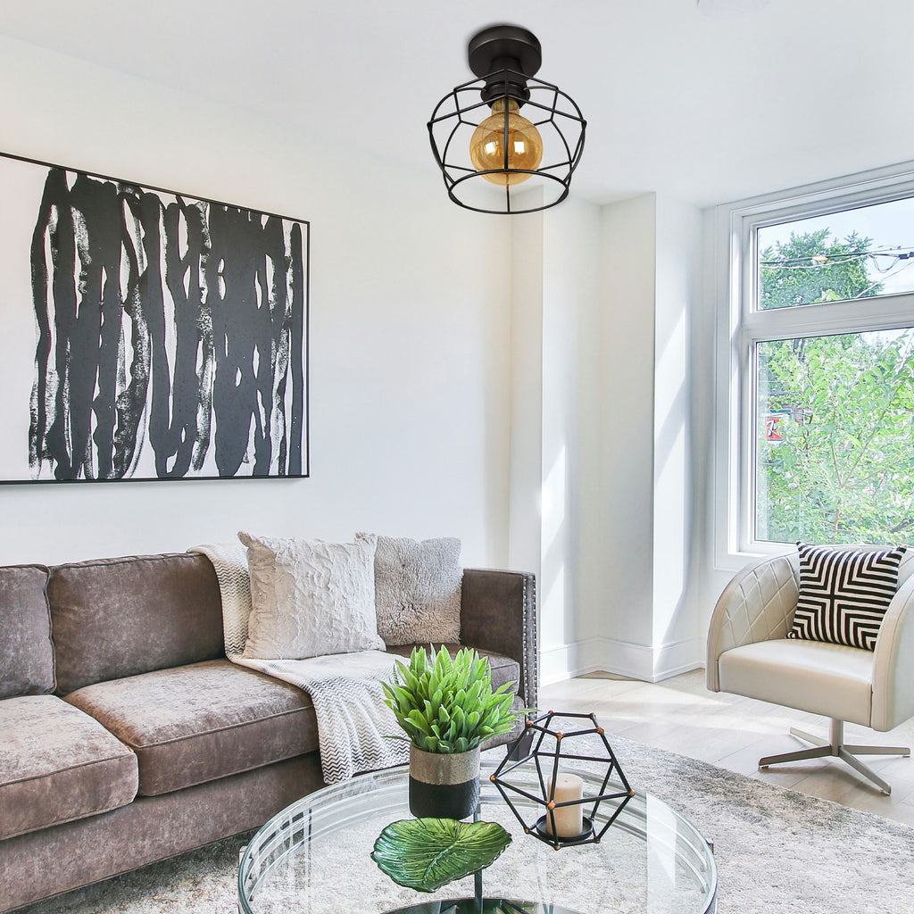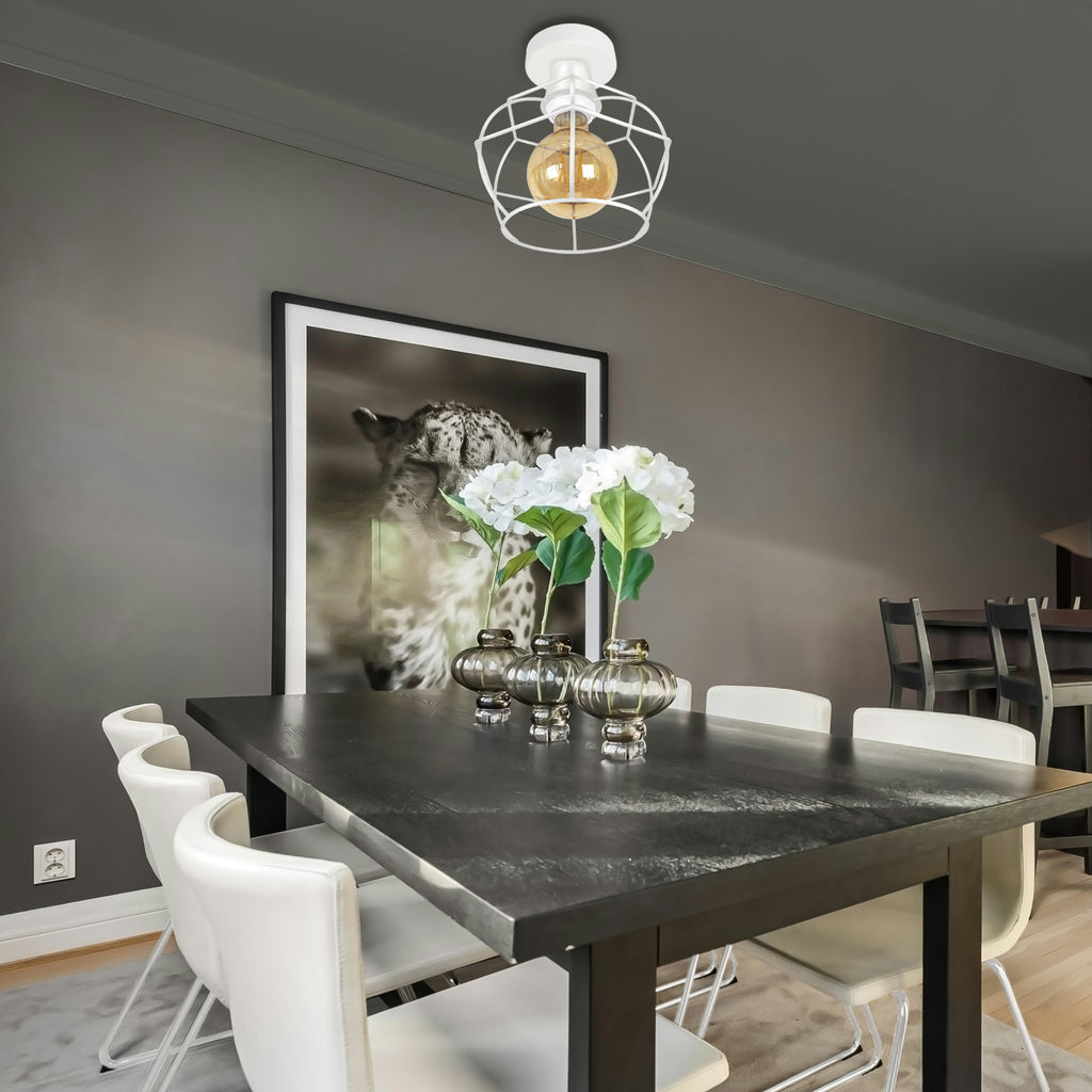 A luminária de teto industrial é elegantemente projetada como uma gaiola com fio e é usada com um acabamento de superfície em tinta epóxi. Crie um enfeite retrô e deslumbrante para a decoração da sua casa. Perfeito para lugares diferentes. Universal para qualquer espaço interior da sua casa: cozinha, escada, sala de jantar, sala de estar, quarto, garagem, corredor, alpendre, etc.-