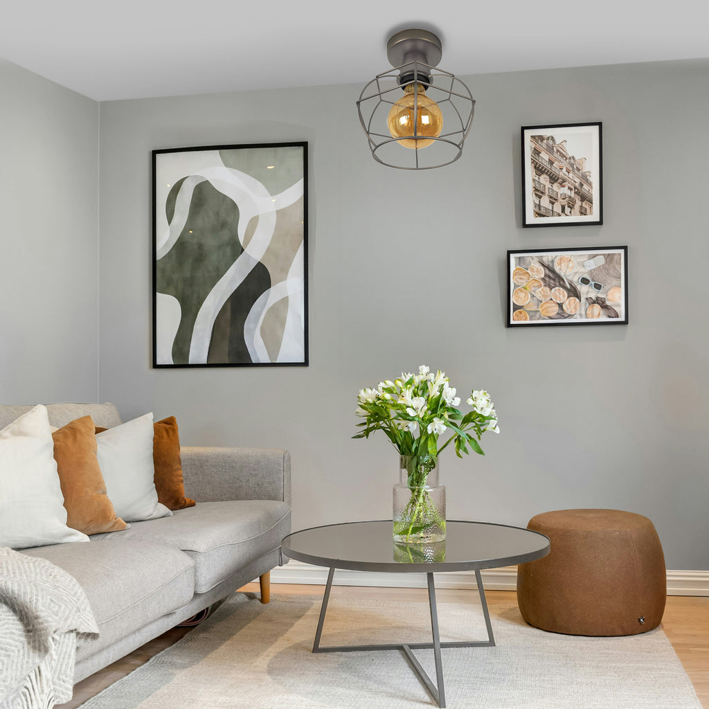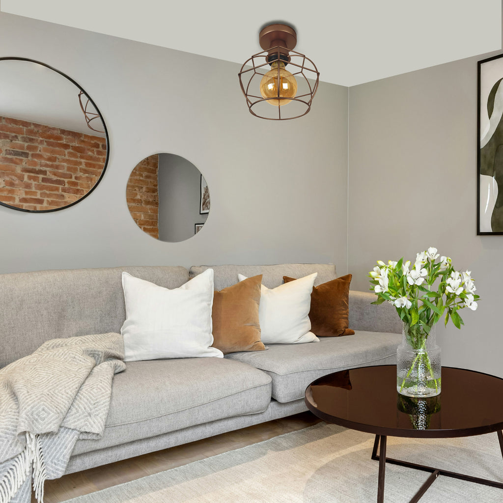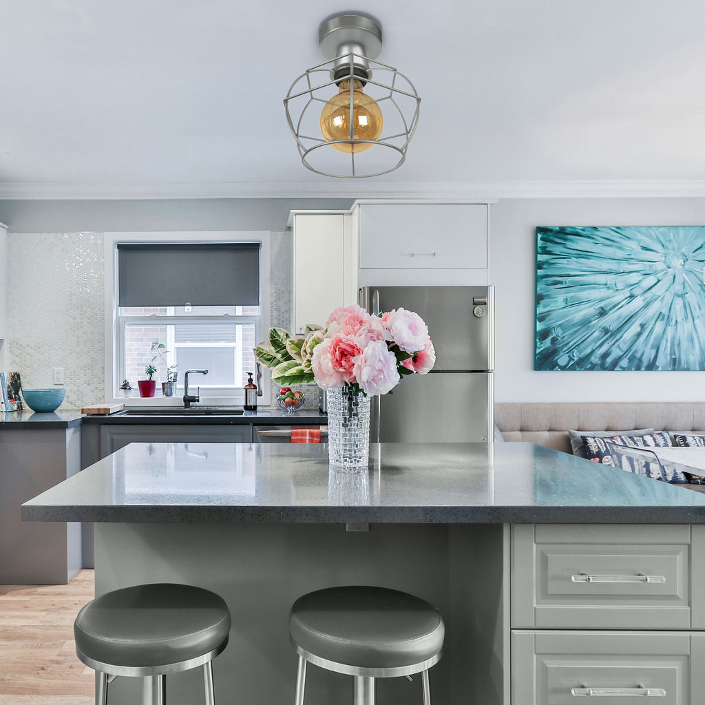 A luminária de teto industrial é elegantemente projetada como uma gaiola com fio e é usada com um acabamento de superfície em tinta epóxi. Crie um enfeite retrô e deslumbrante para a decoração da sua casa. Perfeito para lugares diferentes. Universal para qualquer espaço interior da sua casa: cozinha, escada, sala de jantar, sala de estar, quarto, garagem, corredor, alpendre, etc.-